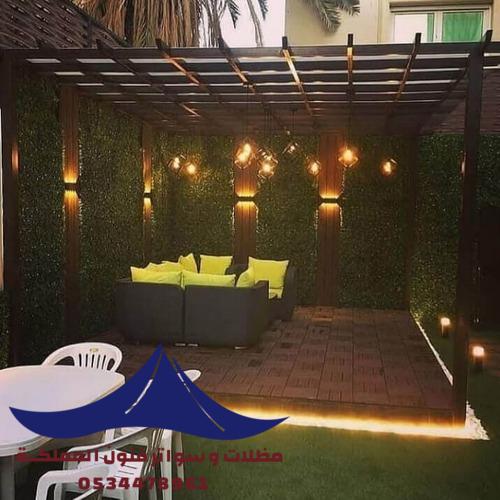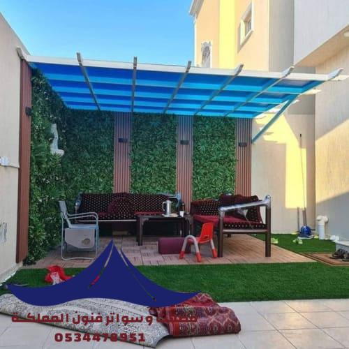 مظلات للجلسات الخارجية للحدائق واسطح المنازل والفلل في الرياض تصاميم جلسات خارجية بأرقى التصاميم بأرخص الأسعار من مظلات وسواتر فنون المملكة .