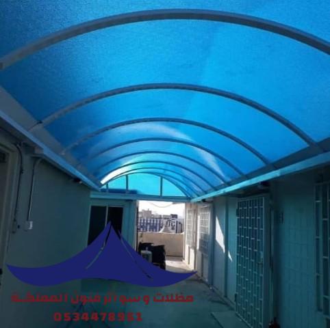 - مظلات زجاج معالجة ضد الكسر ومصنوعة من أقوى أنواع الألواح البلاستيكية (البولي كربونيت) المقوى غير قابل للكسر .